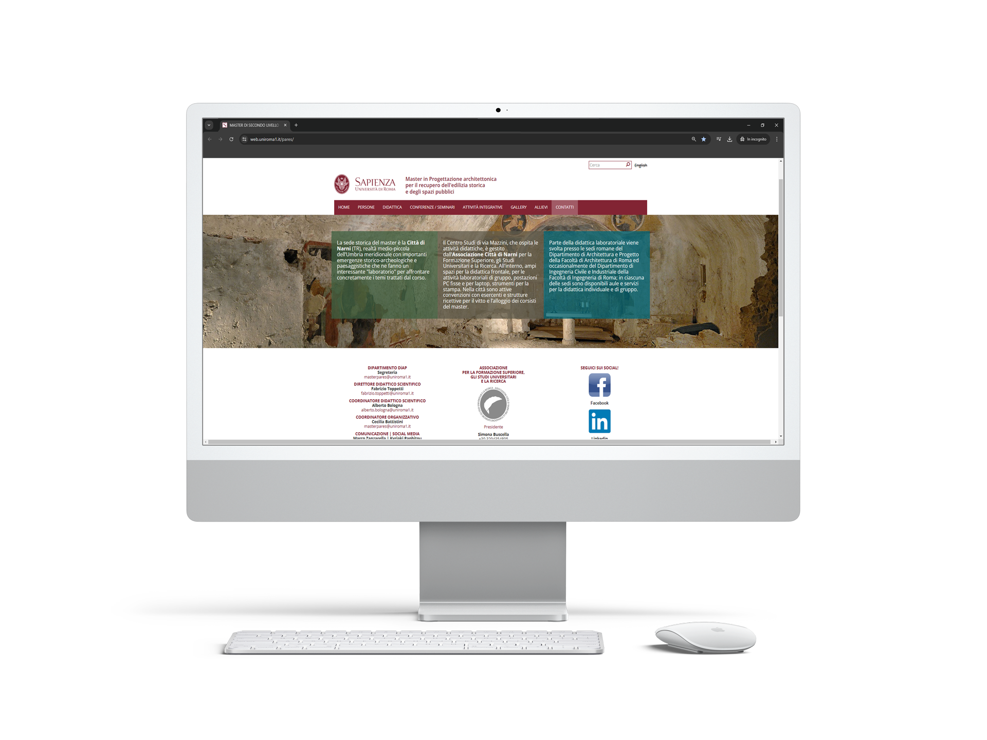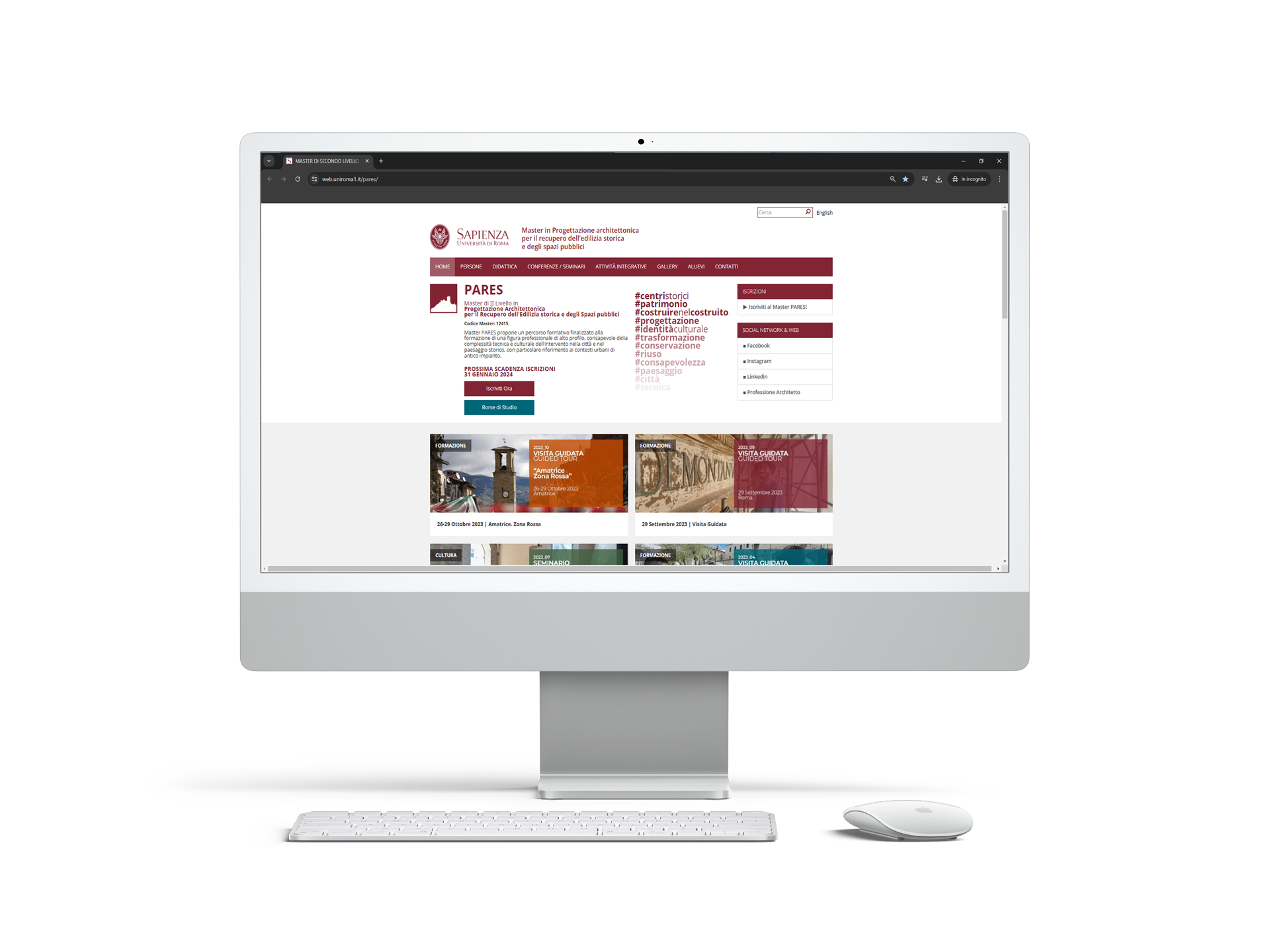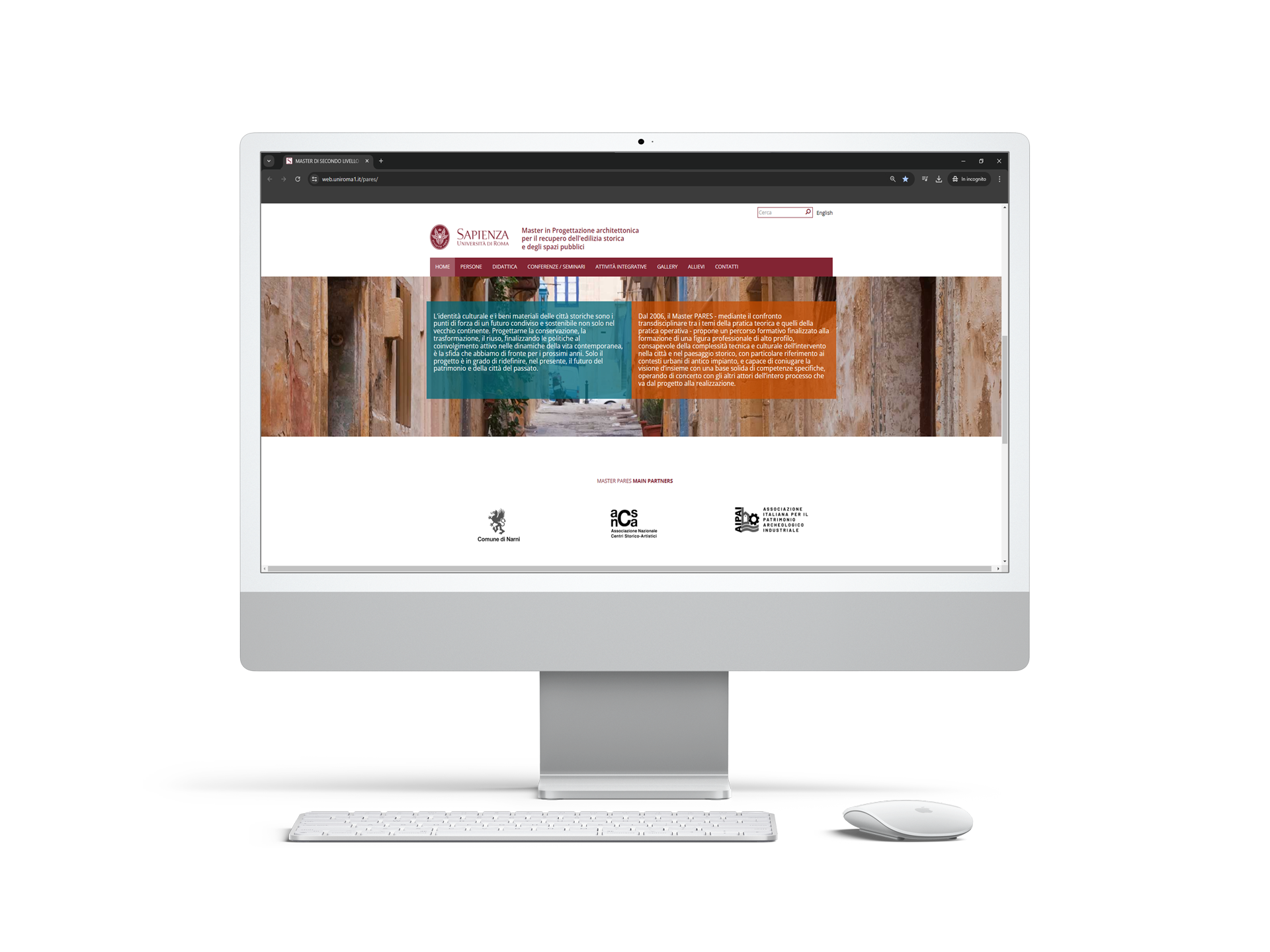 Customizzazione grafica e implementazione codici html bootstrap e css per il sito web ufficiale. Master PARES è un Master di Secondo Livello in Progettazione Architettonica per il Recupero dell’Edilizia storica e degli Spazi pubblici dell’Università Sapienza di Roma.